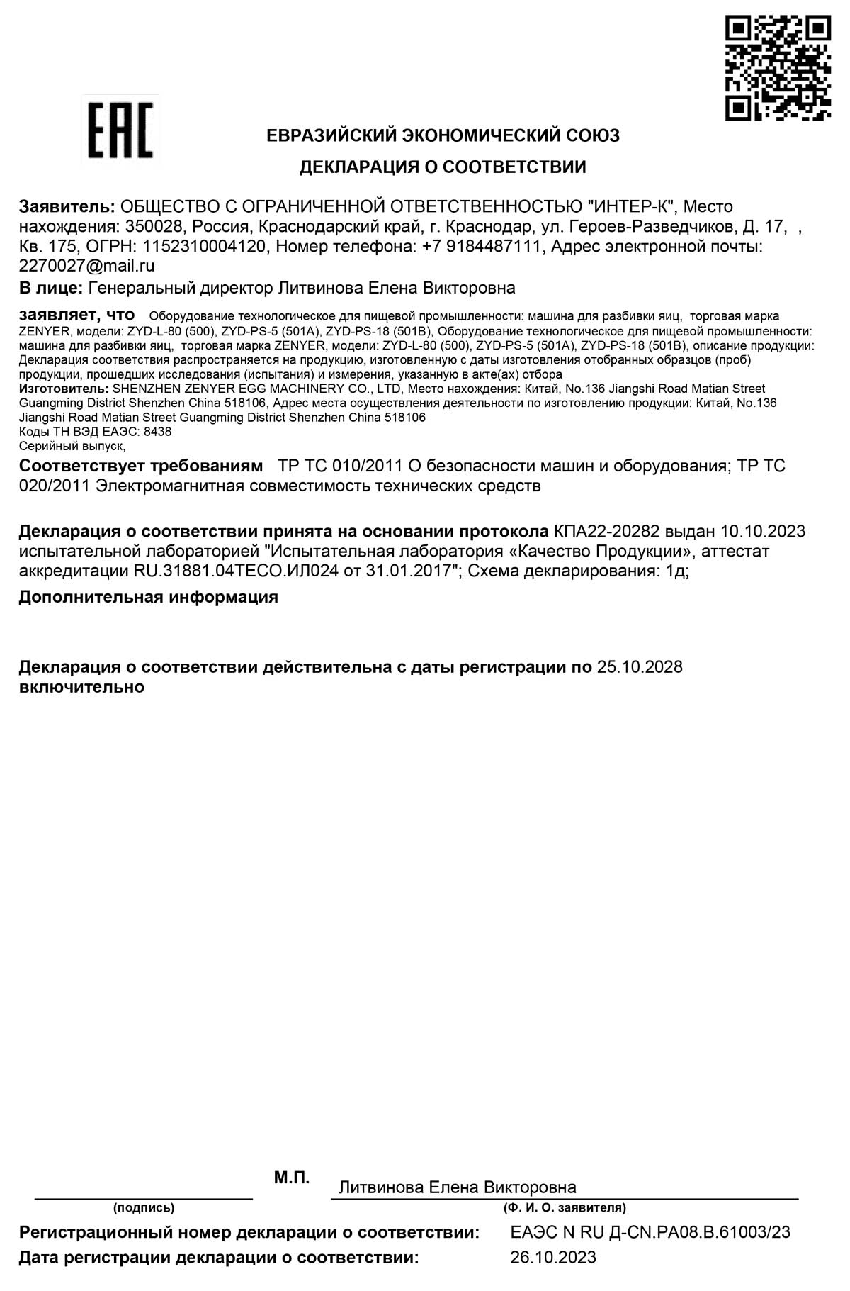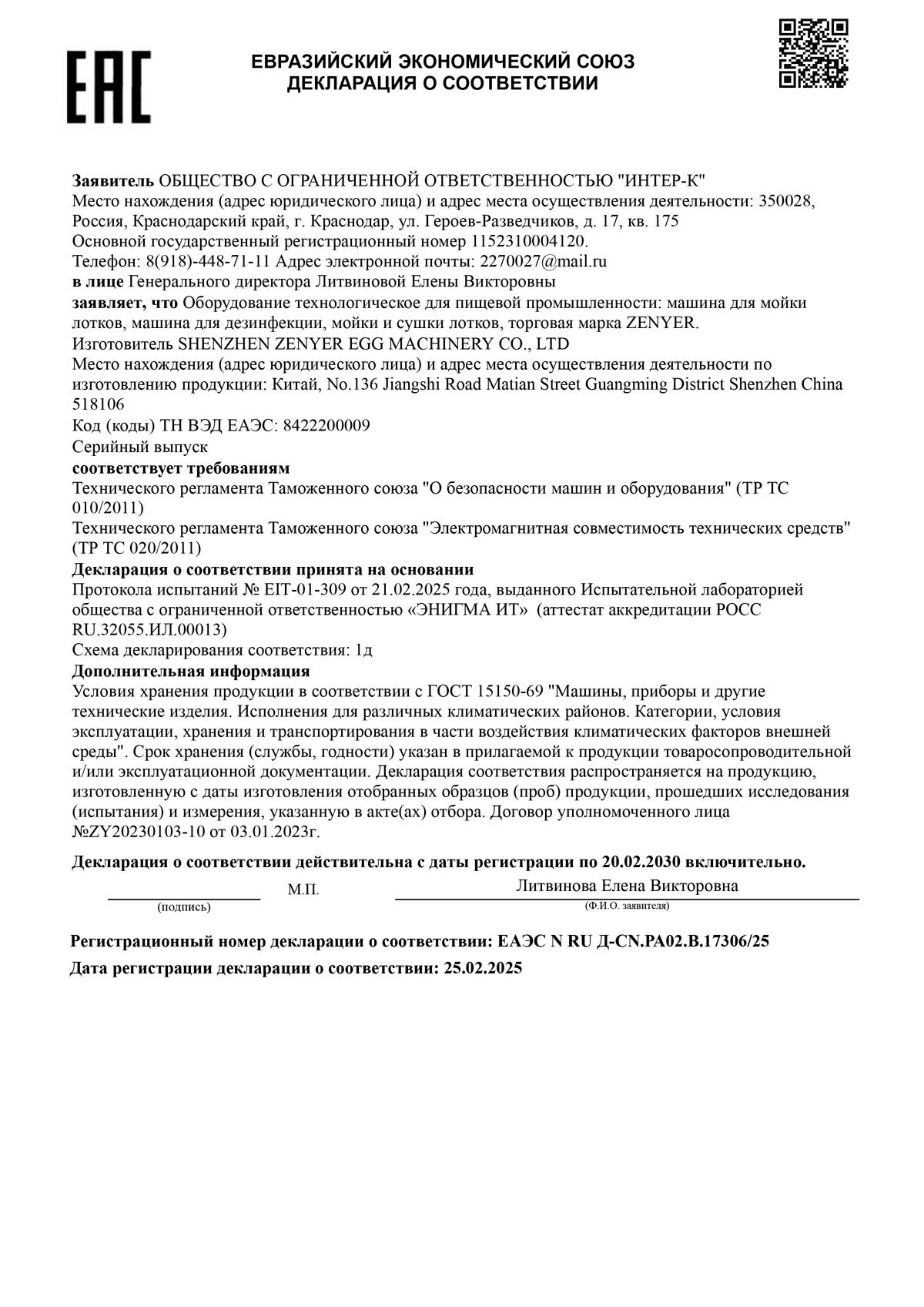 Мы — официальный дистрибьютор Shenzhen ZENYER Egg Machinery в России и странах ЕАЭС. Поставки по контракту, оригинальные комплектующие и поддержка на всём сроке эксплуатации.