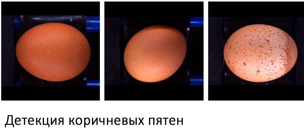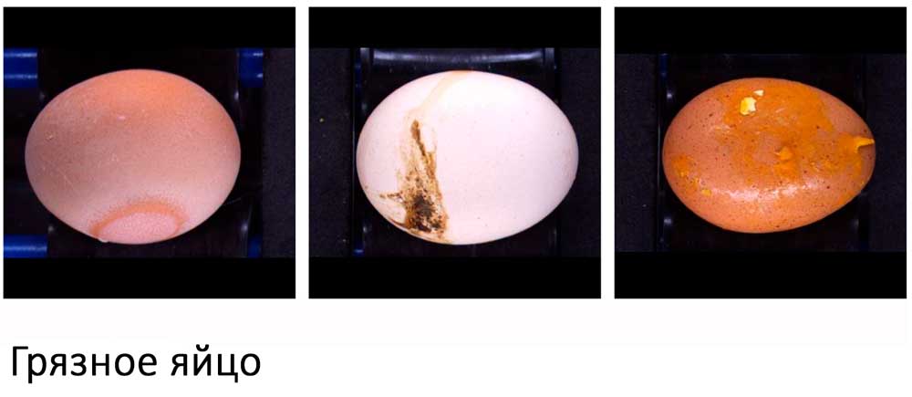 - Распознаваемые дефекты: трещины и сколы скорлупы, подтёки/протёки, загрязнения/пятна, изменение окраски, деформированные/«уродливые» яйца (в т.ч. крапчатые), прочие визуальные дефекты; дефектные яйца автоматически отбраковываются.
