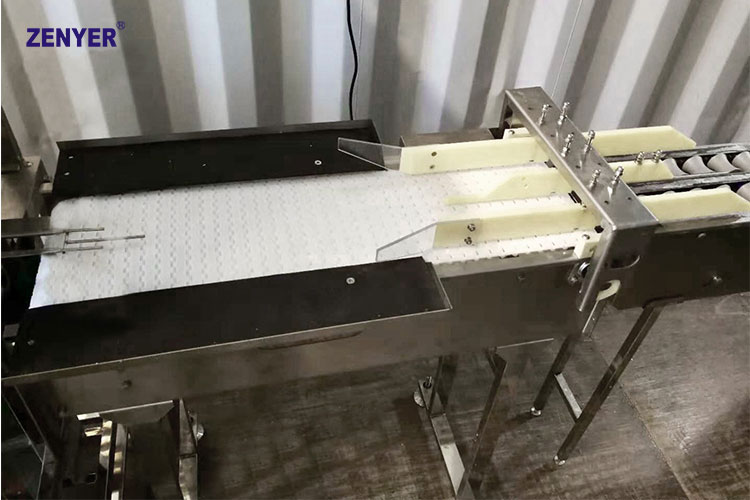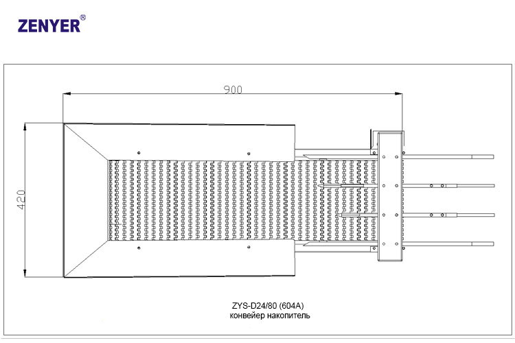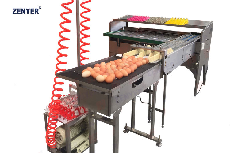 Конвейер накопитель - незаменимый помощник при загрузке яиц на машины для сортировки яиц. При помощи вакуумного подъемника за 1 раз можно поставить 30 яиц, которые направятся в 2 или 3 ряда для подачи на машины.