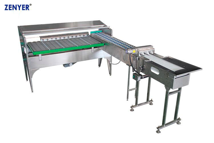 Модель машины для сортировки яиц по категориям 102В с дополнительным столом накопителем 604А производительностью 5400 штук в час. Легкая настройка сортировки, простота и надежность конструкции этой машины для мойки яиц делают ее незаменимым инструментом для ферм малой производительности.