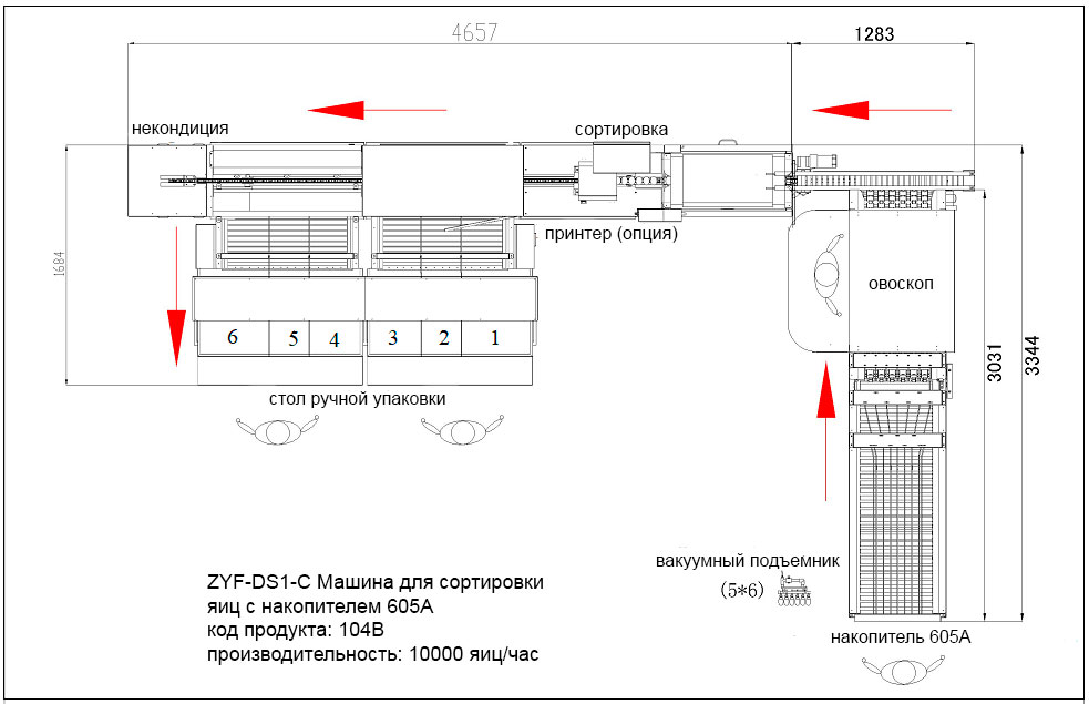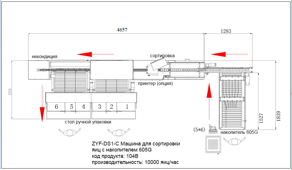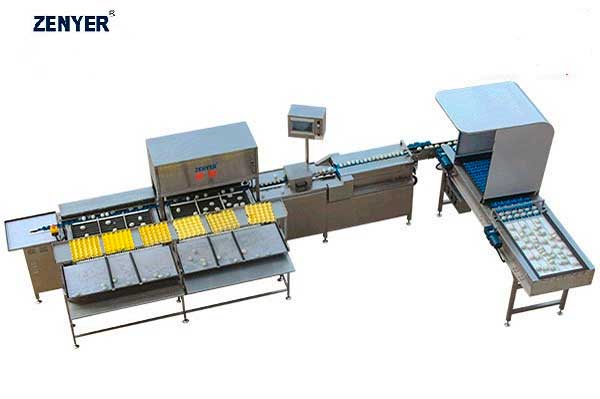 Машина для сортировки яиц ZENYER модель 104В производительностью 10000 штук в час - это машина для ферм малой и средней производительности. Встроенный LED овоскоп , зона накопления и брака.